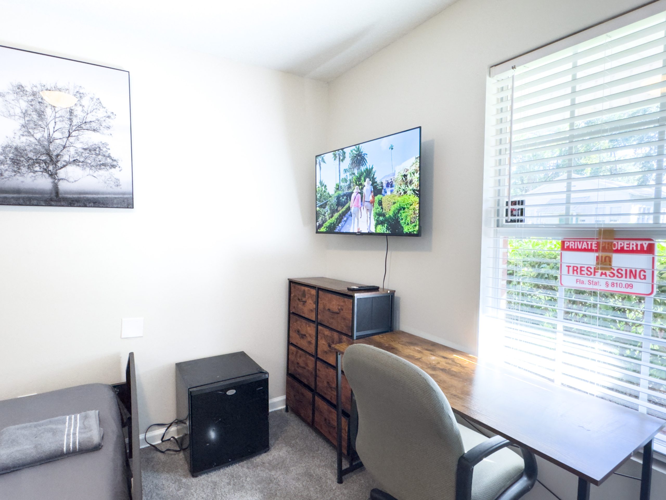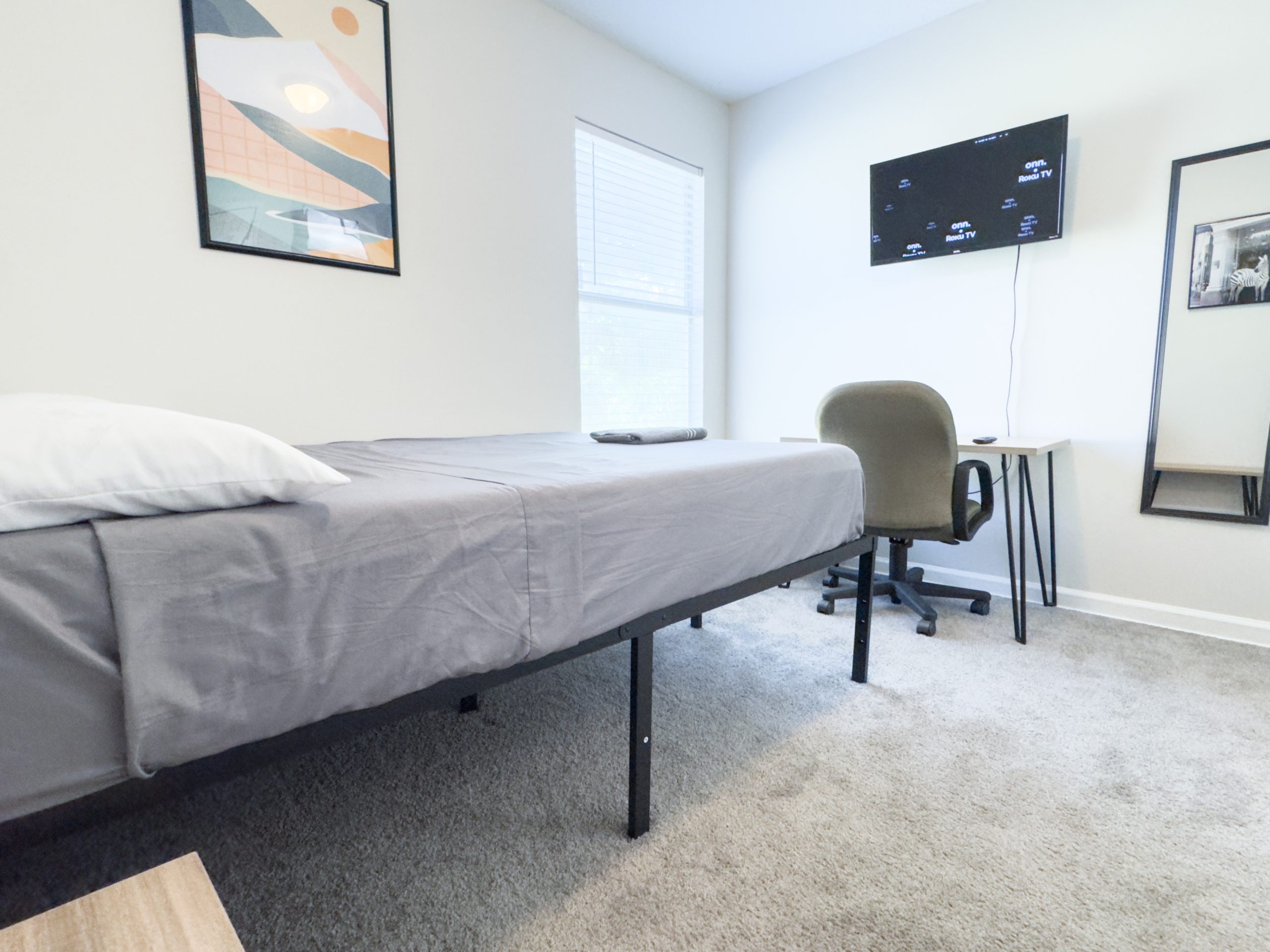 Experience comfortable community living in this well-appointed 5-bedroom, 2-bathroom home in Jacksonville. Each bedroom features a Smart TV and mini fridge for your convenience, providing the perfect personal retreat after a busy day.